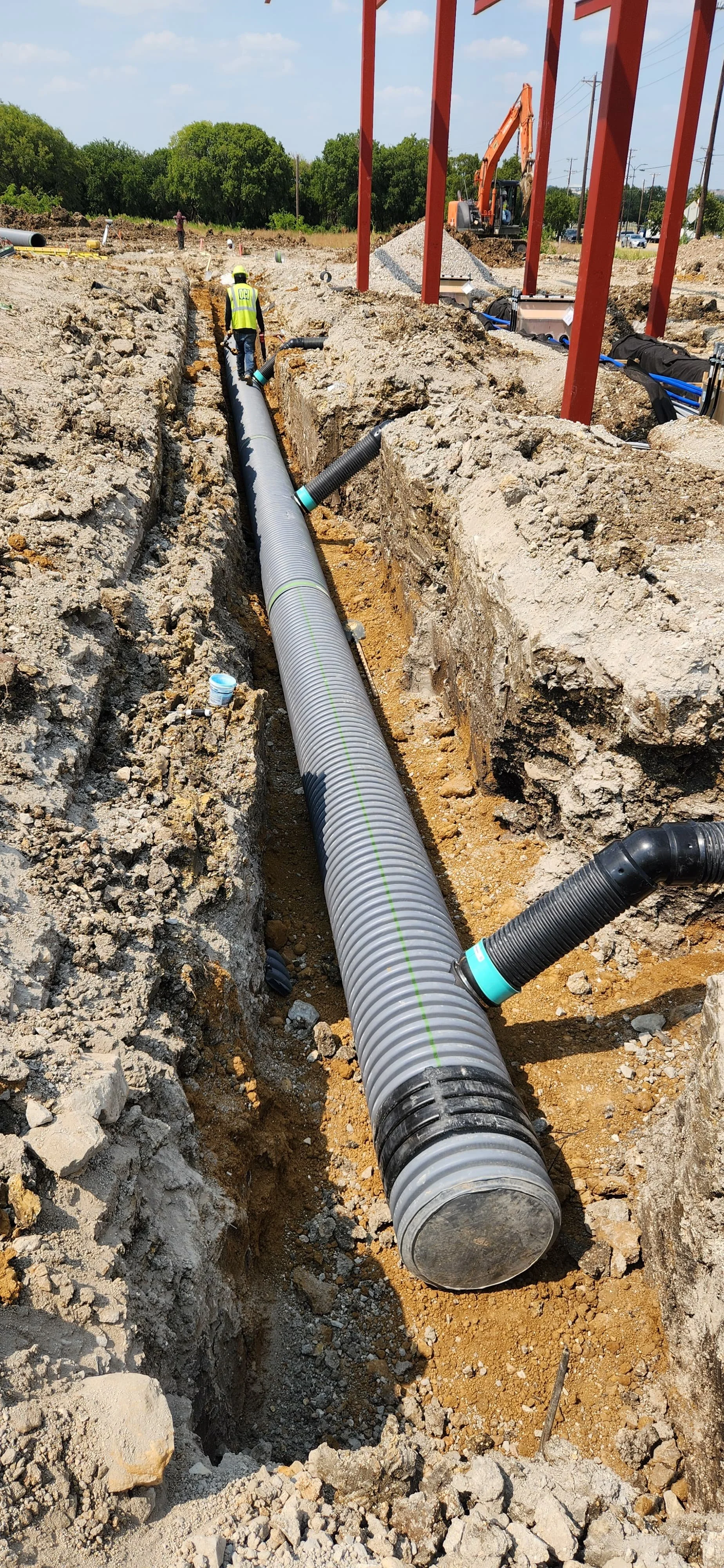 L33 Utilities installs and services storm drainage systems designed to manage surface water and protect sites from flooding. Our team ensures proper flow, system integrity, and compliance with project plans and local requirements.